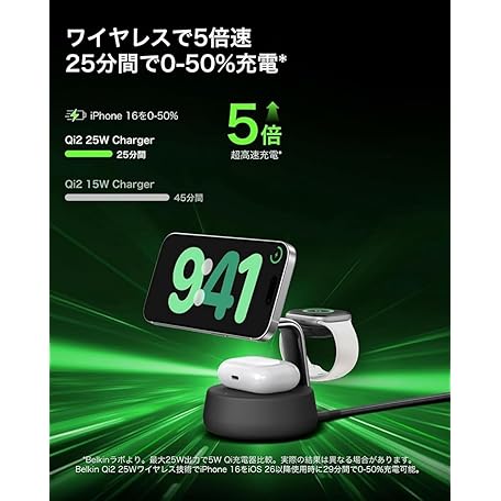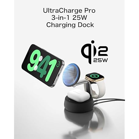 Belkin Qi2 25W Magnetic Charging Dock Wireless Charger, 3 in 1, World's First 25W Charging Stand, Qi2 Official Certified, MagSafe Compatible, Fast Charging, Compatible with iPhone 16 - 12, Apple Watch