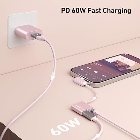 Thông tin sản phẩm BENFEI 2 in 1 USB C Earphone Jack Converter PD 60W with DAC Chip for Fast Charging, USB C to 3.5mm Aux Headphone Phone 15 Pro Max/15 Pro/15 Samsung Galaxy S24/S23/S22 Ultra Pixel 8 Pink