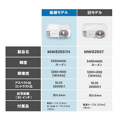 Thông tin sản phẩm BenQ MW826STH WXGA Short Throw DLP Projector (3500 ANSI Lumens / 70-120 Inches Long Lamp Life 15,000 Hours, HDMI x2, D-Sub, 10W Built-in Speaker)