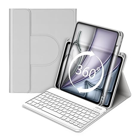 Bettdow(ベットダウ) キーボードケース iPad Air 13インチ M3 2025/M2 2024用 iPad Pro 12.9インチ 第6世代/第5世代/第4世代/第3世代用 360度回転ケース マグネット式の取り外し可能なキーボード ペンシルホルダー付き 縦向き/横向きモード - グレー