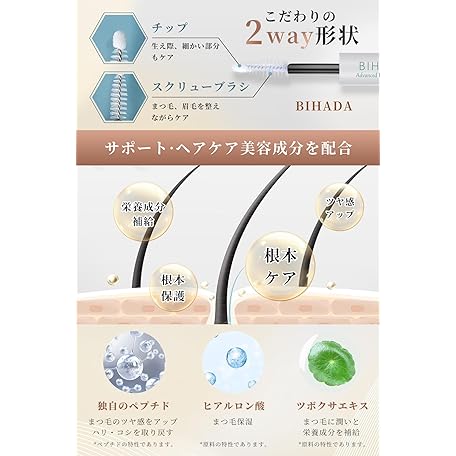 • BIHADA Eyelash Serum, Genuine Product, 2-Way Double Ended Type, Eyelash Care, Beauty Curl, Eyelash Deluxe, Beauty Care Ingredient, Made in Japan, Eyelash Serum, 8 Additive-Free Eyelash Serum