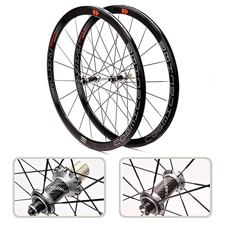 • Bike Wheels 700C Road Bike Wheelset C/V Brake Carbon Fiber Hub Quick Release 40mm Rim 18/21H Flat Spoke for 8/9/10/11 Speed Cassette (Color: Gold, Size: 700C) (Titan 700C)