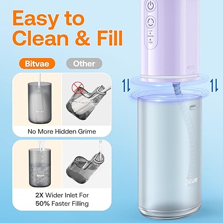 • Bitvae P1 ウォーターデンタルフロッサー ポータブルウォータークリーナーピック コードレスミニウォーター歯クリーナー 伸縮式ウォータータンク付き IPX7防水口腔洗浄器 ブレース 敏感な歯のケア パープル