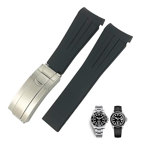 [BKUANE] 20 ミリメートル 21 ミリメートル湾曲端ゴムシリコーン時計バンドロレックスサブマリーナー 20 ミリメートル GMT ヨットマスターデイトナ深海ソフトストラップ(Black Black,20mm)