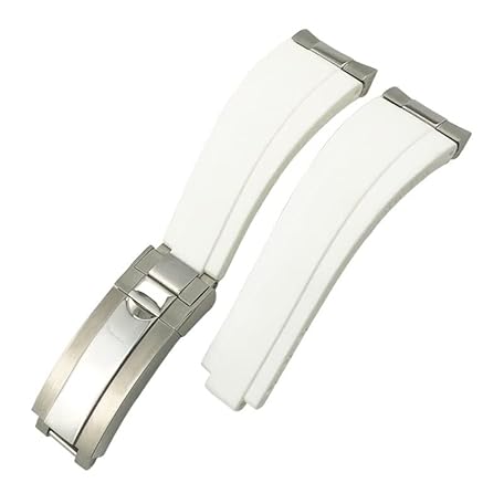 BKUANE Curved End Metal Link Rubber Watch Band 20mm Rolex Daytona GMT Slide Lock Buckle Submariner Silicone Sport Watch Strap