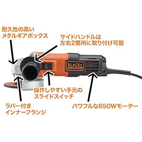 Thông tin sản phẩm Black+Decker Corded Disc Grinder, Grinder Grinder, DIY Electric Tools, Polishing Tools, 3.9 inches (100 mm), Lightweight, Side Handle, 100 V G650