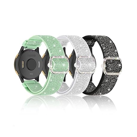 • Bling 伸縮性ナイロンバンド Garmin Vivoactive 5/Vivoactive6/Forerunner 55/165/245に対応 20mm 柔らかい伸縮性 キラキラ 調節可能な交換用ストラップ Garmin Venu Sq 2 ウォッチバンド 女性用 (シルバーホワイト+ブラック+ミントグリーン)