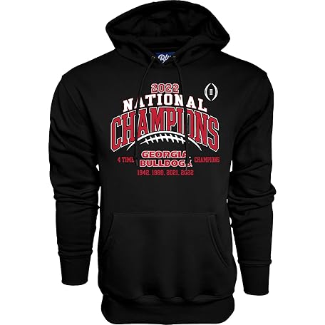 [Blue 84] Ncaa Officially Licensed Georgia Bulldogs National Champs Hooded Sweatshirt 2022-2023 Laces Men's, Black, M