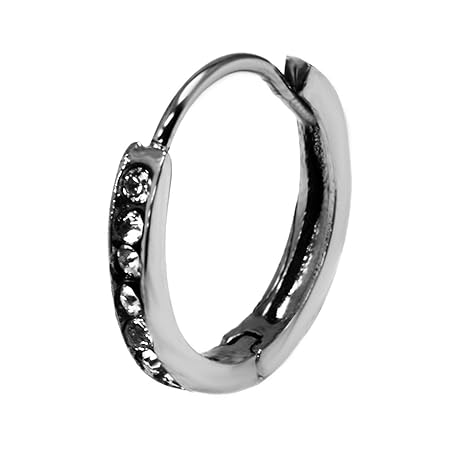 【BLUE GEMS】SURGICAL STAINLESS 片耳 シングル ステンレス ロック ピアス フープ CZ シンプル 男女兼用 ;AMP-305