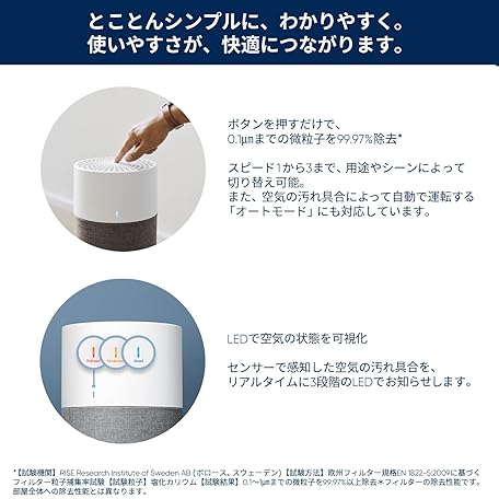 BlueAir Purifier, Blue 3410, Family Type, 622 sq ft (35 Tatami), Pollen, Mold, Pets, Viruses, House Dust, Single Function, Powerful, Easy Care, Cigarettes, Ventilation