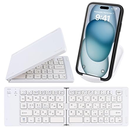 Bluetooth Wireless Folding Keyboard for Tablets, Thin, 0.18 inches (4.6 mm), Silent, Hiragana Engraving, Type-C Charging, IOS, Android, Windows, Mac, PC, Ipad White