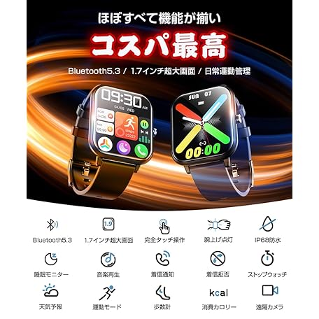 Thông tin sản phẩm スマートウォッチ Bluetooth5.3 【2025新登場・1.7インチ大画面・超薄型】 活動量計 iPhone/アンドロイド対応 IP68防水 スポーツウォッチ 24種類運動モード メンズ レディース GPS連携 歩数計 腕時計 SMS/Twitter/Line通知 長持ちバッテリ 文字盤調整/腕上げ点灯/天気予報 誕生日 プレゼント 日本語説明書(レッド,