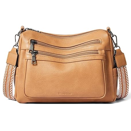 • Bluome 7L クロスボディパース 女性用 ミディアム クロスボディバッグ ヴィーガンレザー ショルダーハンドバッグ 調節可能なストラップ付き, キャメル