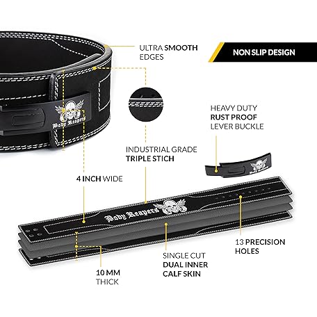 Body Reapers ウェイトリフティングベルト 男女兼用 高耐久 レバーベルト ウェイトリフティングベルト カーフスキンレザー製 厚さ10mm 幅4インチ バックサポート ジム フィットネストレーニング用パワーリフティングベルト