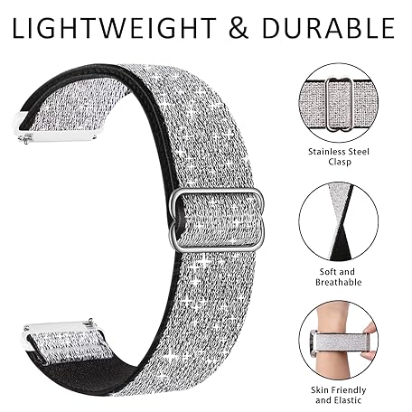 Bolesi ストレッチナイロン腕時計バンド Garmin Forerunner 55/165 Vivoactive 5/3,20mm 伸縮ストラップ Venu Sq 2/2 Plus/Venu レディース 3本パック