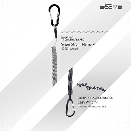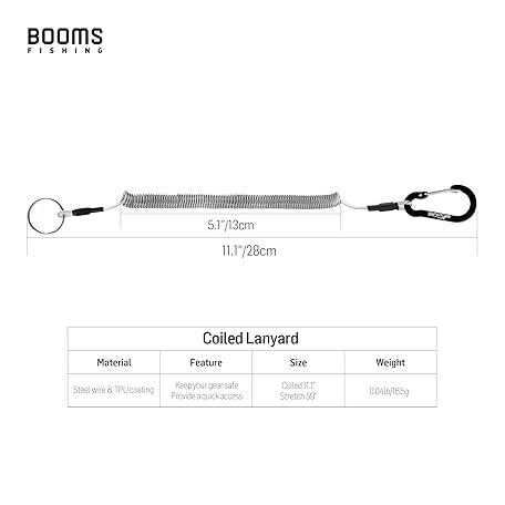 Booms Fishing T04 Fishing Lanyard Spiral Cord Wired Butt Rope 1500mm Max Stretch