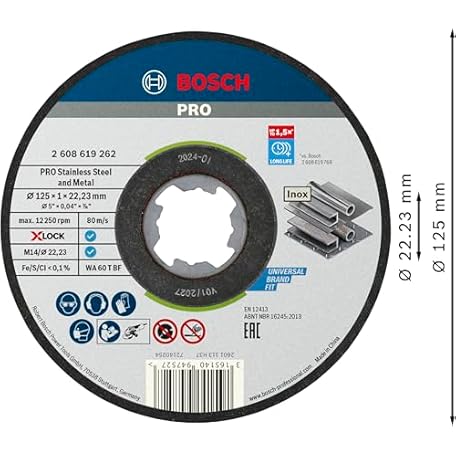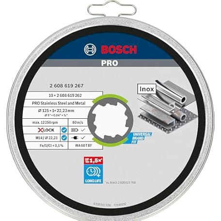 Thông tin sản phẩm Bosch 2608619267 X-LOCK Cutting Wheel (For Standard Stainless Steel, 4.9 x 0.04 inches (125 x 1.0 mm), 10 Pieces
