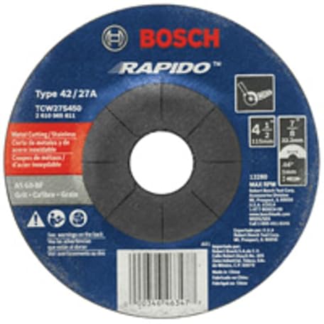 BOSCH TCW27S450-25-ピース 4-1/2 in 045 インチ 7/20.3 cm アーバータイプ 27A (ISO 42) 60 グリット Rapido™ 高速高速金属/ステンレス切削研磨ホイール