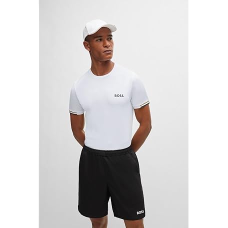 • BOSS Men's Matteo Berrettini Signature Stripe Artwork Waffle Fabric T-Shirt
