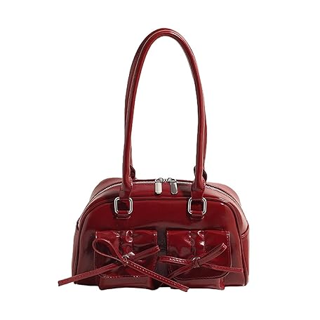 Bowknot Design Handbag, Women's, PU Leather, Lightweight, Shoulder/Handbag, 2-Way, Fashionable, Compact, Wallet, Women's, Cute Everyday Bag, Red