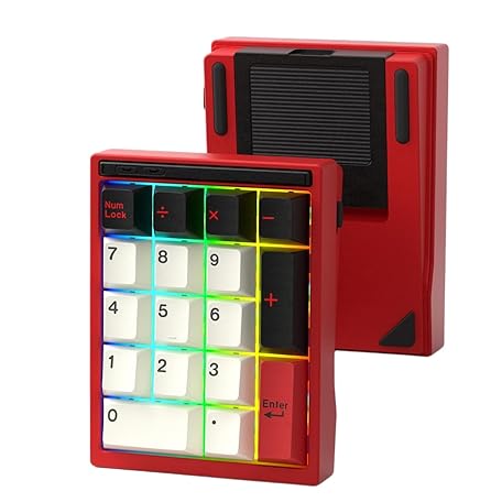 • BOYI Y17 アルミニウム機械式テンキー、ワイヤレスRGBテンキー、クイックリリースナンバーパッド、Bluetooth 5.0/2.4G/Type-C トライモードホットスワップ 17キー PBT キーキャップ マクロキーパッド ノートパソコン/PC/TCLキーボード用 (レッド)
