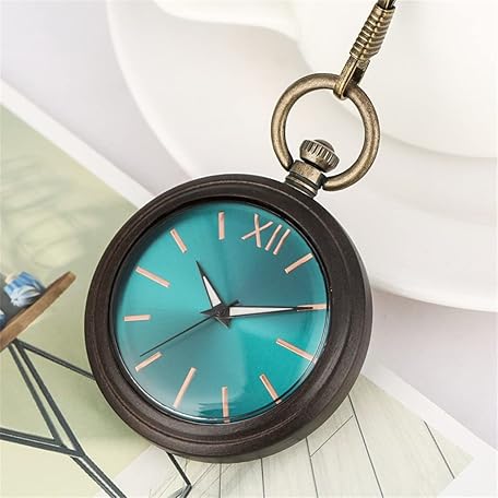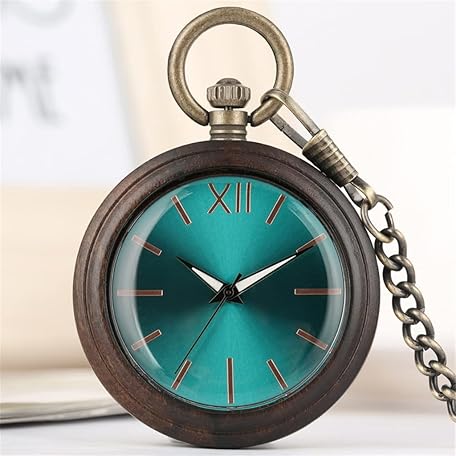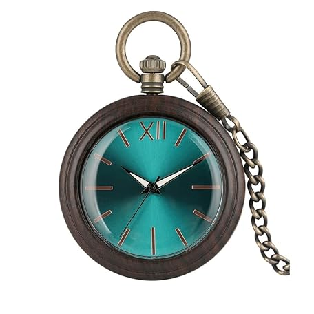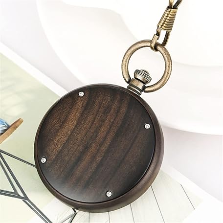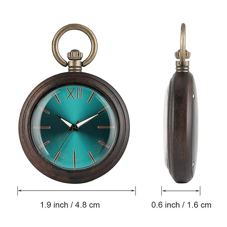 BREWIX Hand Blue Dial Ebony Wood Quartz Pocket Watch Bronze Pendant Chain Wood Pocket Clock Pocket Watch