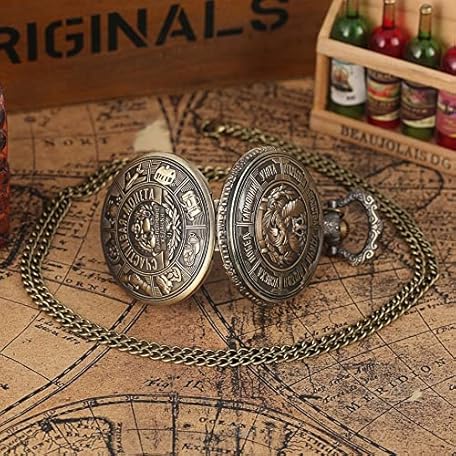 • BREWIX Retro Coin Replica Embossed Metal Quartz Pocket Watch Bronze Pendant Necklace Antique Coin Watch Gift for Men Pocket Watch