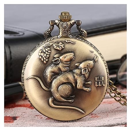 BREWIX Retro Zodiac Ox Tiger Snake Dog Pendant Watch Old Fashioned Bronze Necklace Clock Fob Chain Pocket Watch (Color: Black)