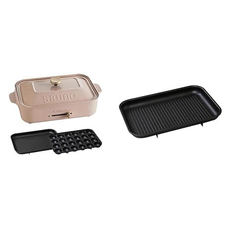 Bruno BOE021-GRILL Compact Hot Plate, Main Body, 2 Types of Plates (Takoyaki Flat), Pink, Beige, Stylish, Cute, 1 Lid, Lid Included, 1,200 W, Temperature Adjustment, Easy to Clean, For 1 Person 2 +
