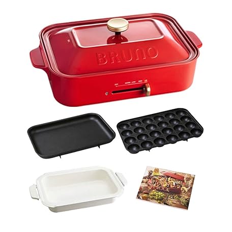 BRUNO Compact Hot Plate Ceramic Coated Pot Set with Recipe Red Unsized BOE021-SET-NABE-RD