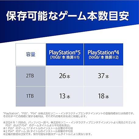 Thông tin sản phẩm Buffalo SSD External 2.0TB PlayStation Officially Licensed PS5 Support PS4 USB 3.2 Gen2 Type-A Compact Stick Small SSD-SAO2.0U3-B/N