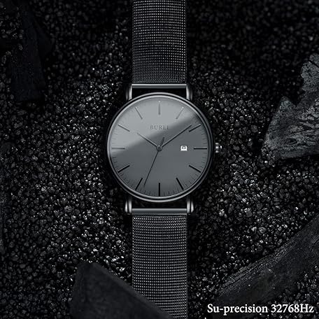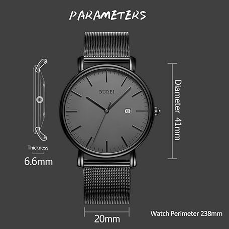 Thông tin sản phẩm Burei Men's Wrist Watch, Stylish, Minimalist, Ultra Thin Commuter Net Strap, Quartz, Waterproof, Birthday Gift, black grey