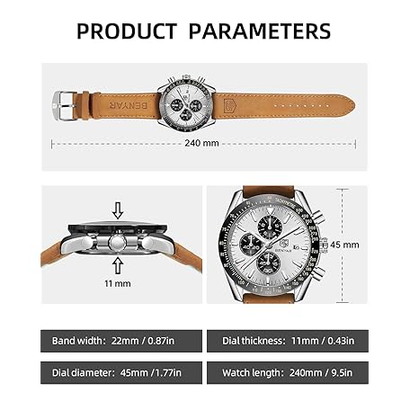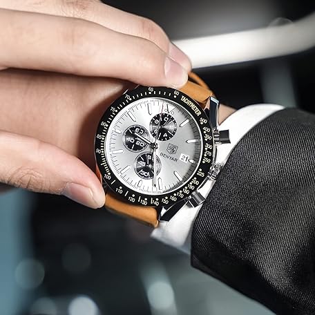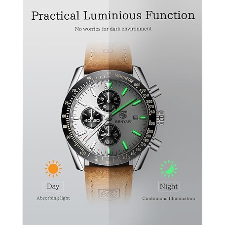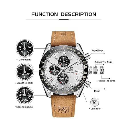 BY BENYAR BY BENYAR Men's Watches Chronograph Analog Quartz Movement Stylish Sport Designer Wrist Watch 30m Water Resistant Elegant Father's Day Gift, Light Blue, Chronograph, Quartz Movement, white, Casual