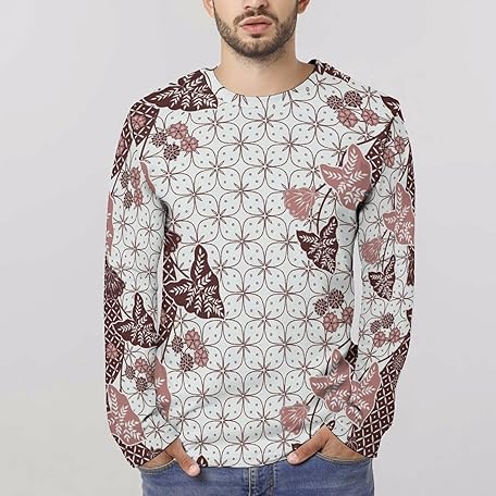 Thông tin sản phẩm Bygusso(バイグソ) Men's Long Sleeve T Shirt Retro Batik Indonesia Pullover Tops Round Neck Fashion Print 2XL