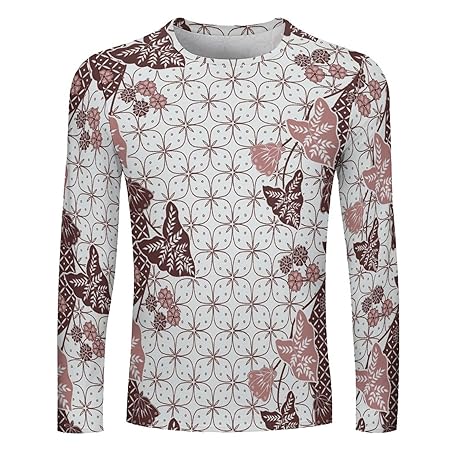 • Bygusso(バイグソ) Men's Long Sleeve T Shirt Retro Batik Indonesia Pullover Tops Round Neck Fashion Print 2XL