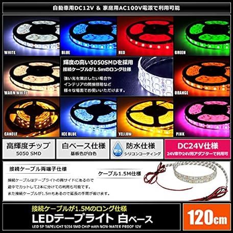 Thông tin sản phẩm Cable 3.9 ft (1.5 m) 24V Waterproof LED Tape Light, 3 Chips, 47.2 inches (120 cm), White Base, Light Color: Green
