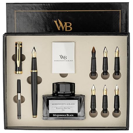 Thương hiệu Wordsworth & Black là cái tên nổi tiếng được rất nhiều khách hàng trên thế giới chọn lựa. Với kiểu dáng đẹp mắt, sang trọng, sản phẩm Calligraphy Pen Gift Set with Ink Bottle, 6 Ink Cartridges, Ink Refill Converter, 6 Replacement Nibs, Premium Packaging, Journaling Smooth Writing Pen, Black Gold, Calligraphy Pen Set là sự lựa chọn hoàn hảo nếu bạn đang tìm mua một món cho riêng mình.
