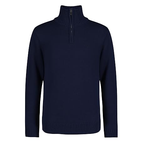 Calvin Klein Boys' Sweater Half Zip Pullover Sweater, Ribbed Neckline & Logo Detailing, dark blue solid