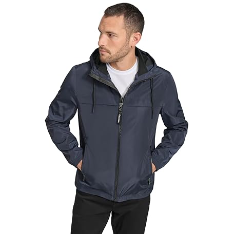 • Calvin Klein Men's Adjustable Drawstring Hood Zip Up Windbreaker Jacket, navy, S