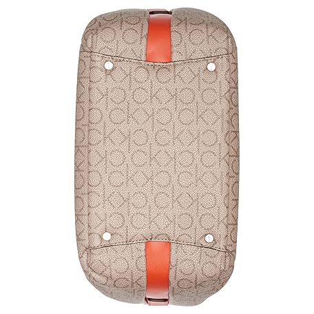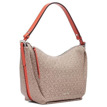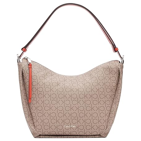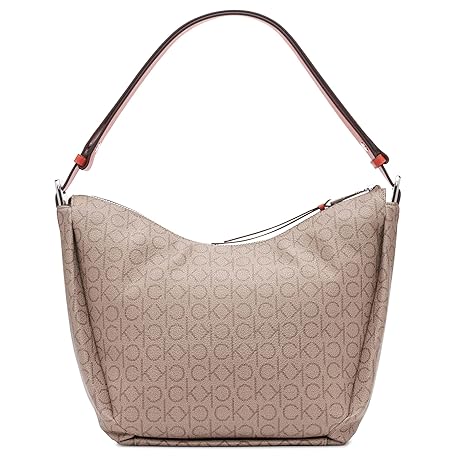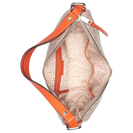 Calvin Klein Prism Top Zip Convertible Hobo Shoulder Bag, Almond/Taupe/Spicy Orange Logo, One Size