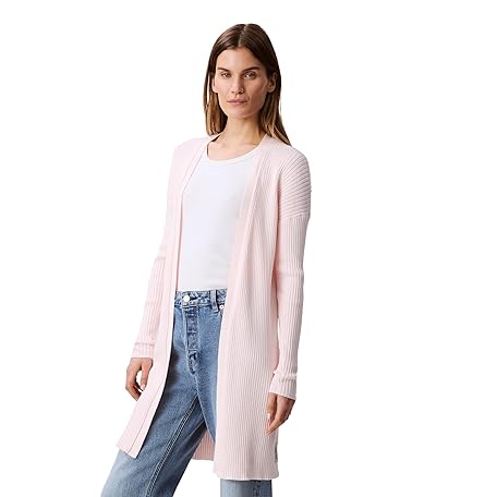 Calvin Klein レディース スムースコットンリブセーター ダスター, パール, Small