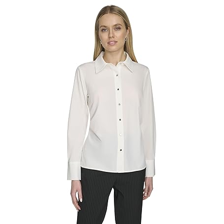 Calvin Klein Women's Collared Long Sleeve Button Down Top Blazer, cream, S