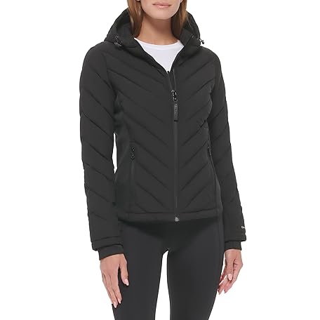Calvin Klein Women's Scuba Side Panel and Sleeve Detail Adjustable Hood Zip Pocket Spafer, Adjustable Hood Black, X-Large