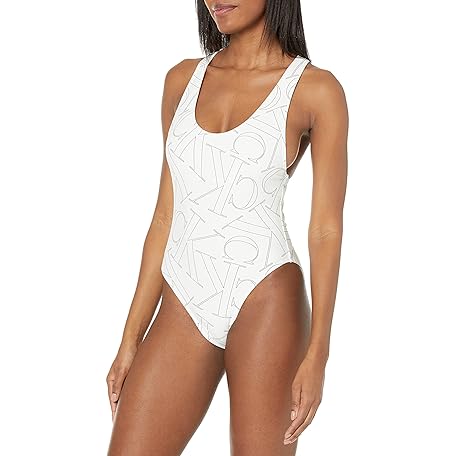Calvin Klein Women's Standard Racerback Removable Cup One Piece Swimsuit, Soft White Logo, X-Large