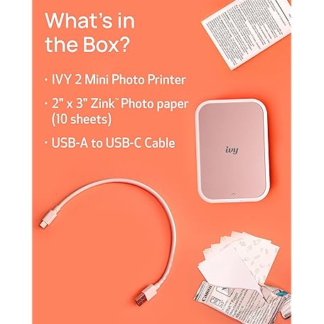Thông tin sản phẩm Canon Ivy 2 Mini Photo Printer, Print from Compatible iOS & Android Devices, Sticky-Back Prints, Blush Pink