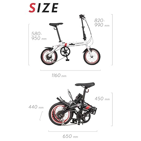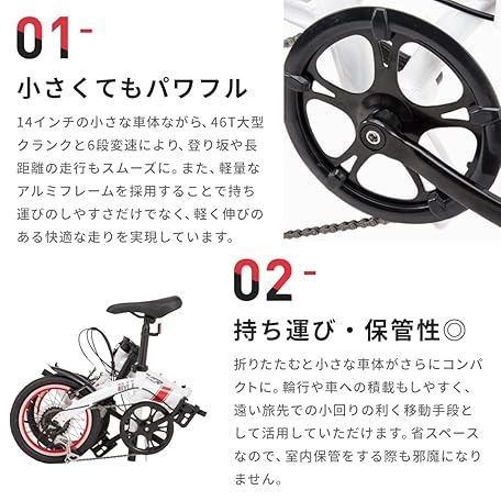 Thông tin sản phẩm CANOVER CA-M1 Folding Bicycle, 14 Inches, Shimano 6-Speed Gear, 46T Large Crank, Lightweight, Approx. 22.0 lbs (10 kg), Aluminum Frame