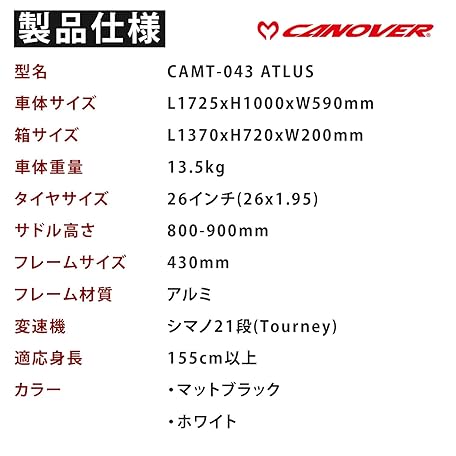 Sản phẩm CANOVER CAMT-043-DD ATLAS Mountain Bike Bicycle 21 Speed Suspension Disc Brake Matte Black/White đang được bán với giá ưu đãi là $309.8652 tại nước Nhật.