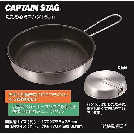 Sản phẩm キャプテンスタッグ(CAPTAIN STAG) バーベキュー フライパン 鍋 ふっ素樹脂加工 アルミ製 折りたたみ式ハンドル たためるミニパン 蓋 16cm đang được bán với giá ưu đãi là $12.6549 tại nước Nhật.