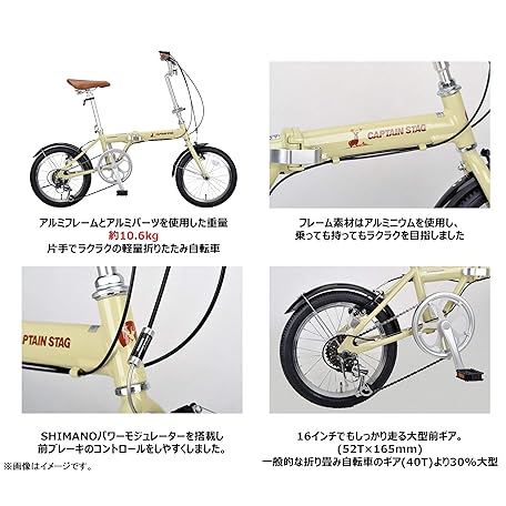 Thông tin sản phẩm Captain Stag AL 16 Inch Folding Bicycle, Aluminum Frame, Lightweight, Front and Rear V-Shaped Brakes, Shimano Power Modulator, High Gear Ratio Setting, Front and Rear Mud Flaps