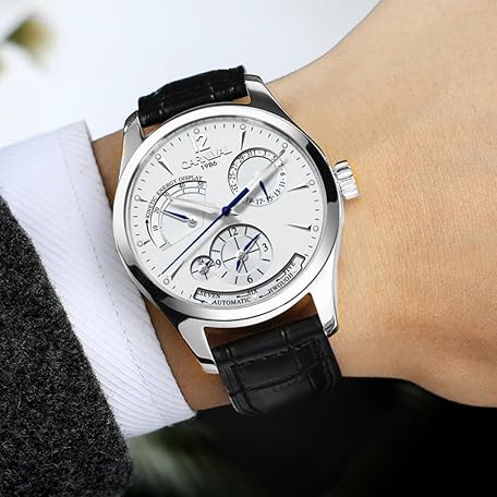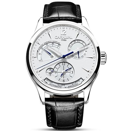 Thông tin sản phẩm Carnival Men's Automatic Dual Time 24 Hour Power Reserve Calendar Waterproof Watch, white, Watch